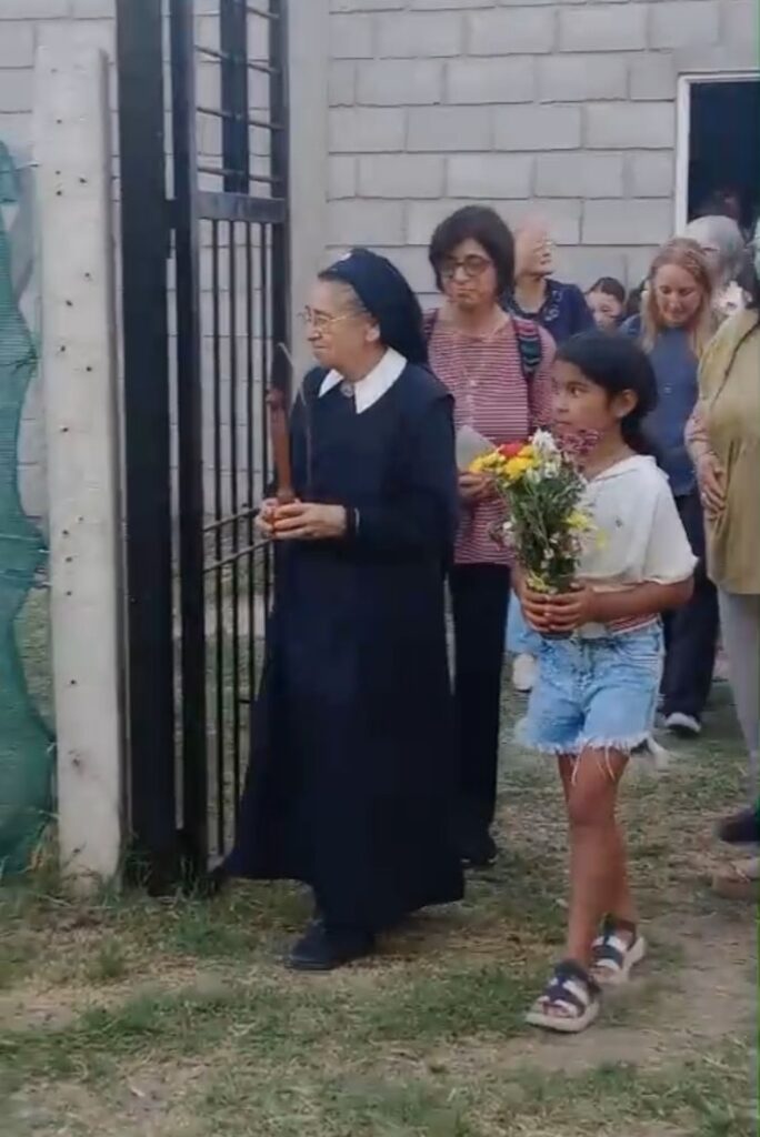 Guía: ahora nos dirigimos cantando hasta la imagen que está en la Punta de Nuevo Schoenstatt. Lo hacemos cantando el lema del Adviento: “María Estrella de la esperanza, guíanos al Niño”