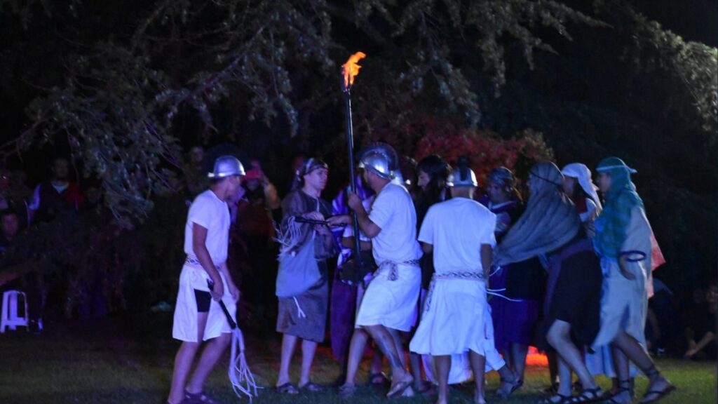 La jornada continuó por la tarde y, a las 19:30 hs, el Santuario se convirtió en escenario de un momento particularmente fuerte: la representación de la Pasión, llevada adelante por el grupo de San Cayetano.
